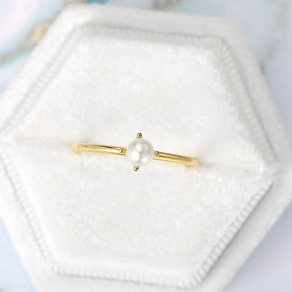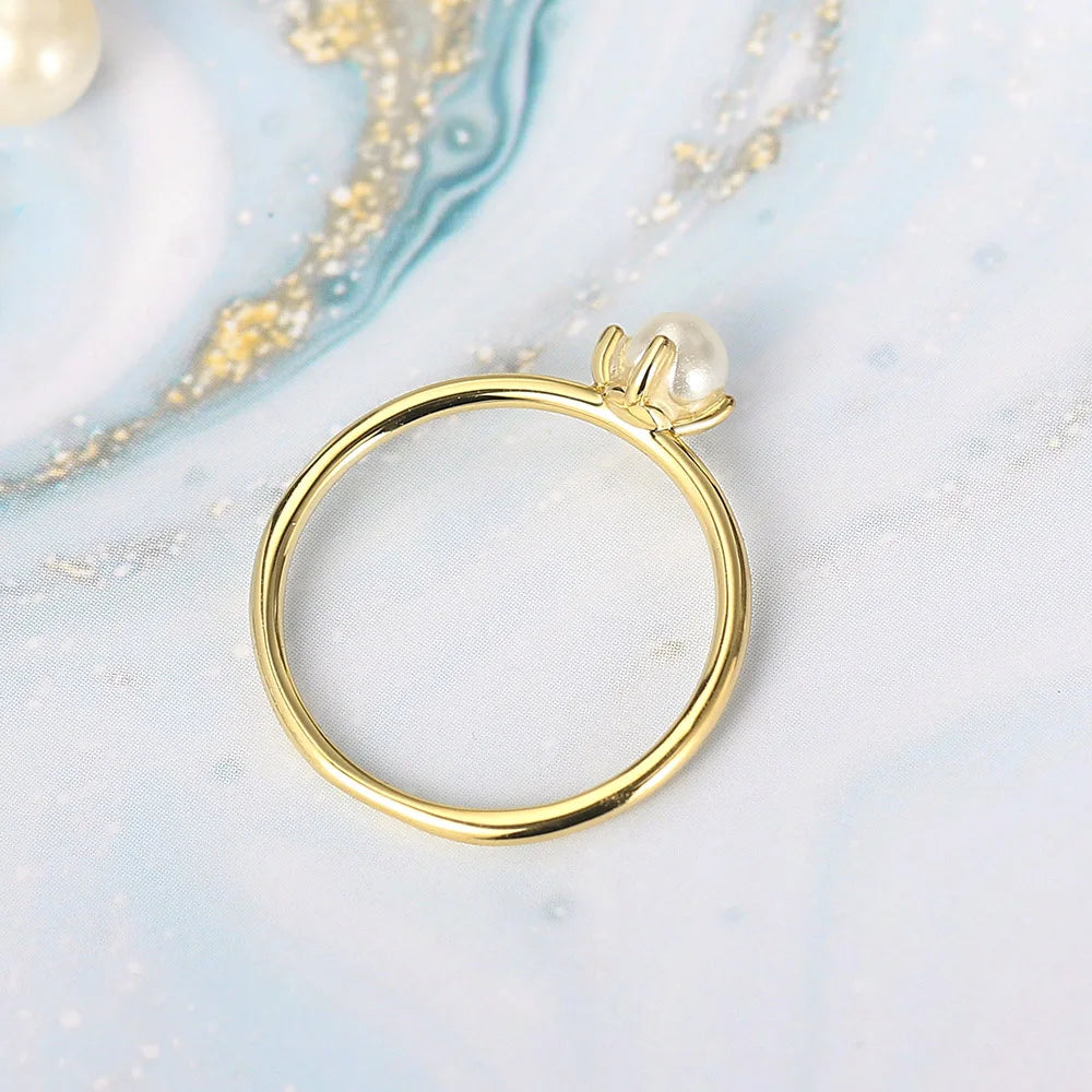Minimalist Gold Thin Ring with Imitation Pearl – Dainty Women’s Jewelry Gift